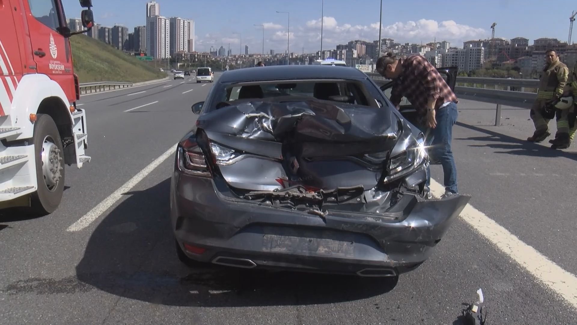 Kazaya karışan 34 GSS 838 plakalı otomobilin sürücüsü Özkan Deniz, “Trafik durduktan bir süre sonra arkadan çarpma sesleri geldi. En son arkamdaki araç, ters dönmüş bir şekilde bana doğru geliyordu. En son bana da vurdu. Benden önce 2 araca daha vuruyor. Birini bariyerlere sıkıştırmış, diğerini orta şeride atmış. Takla atan araçtaki karı koca 2 kişi yaralandı. Bilinçleri açıktı, herkes onları çıkarmak için o araca koştu. Diğer araçlarda yaralı yoktu. Ambulans kısa sürede geldi, yaralıları hastaneye götürdü” dedi.